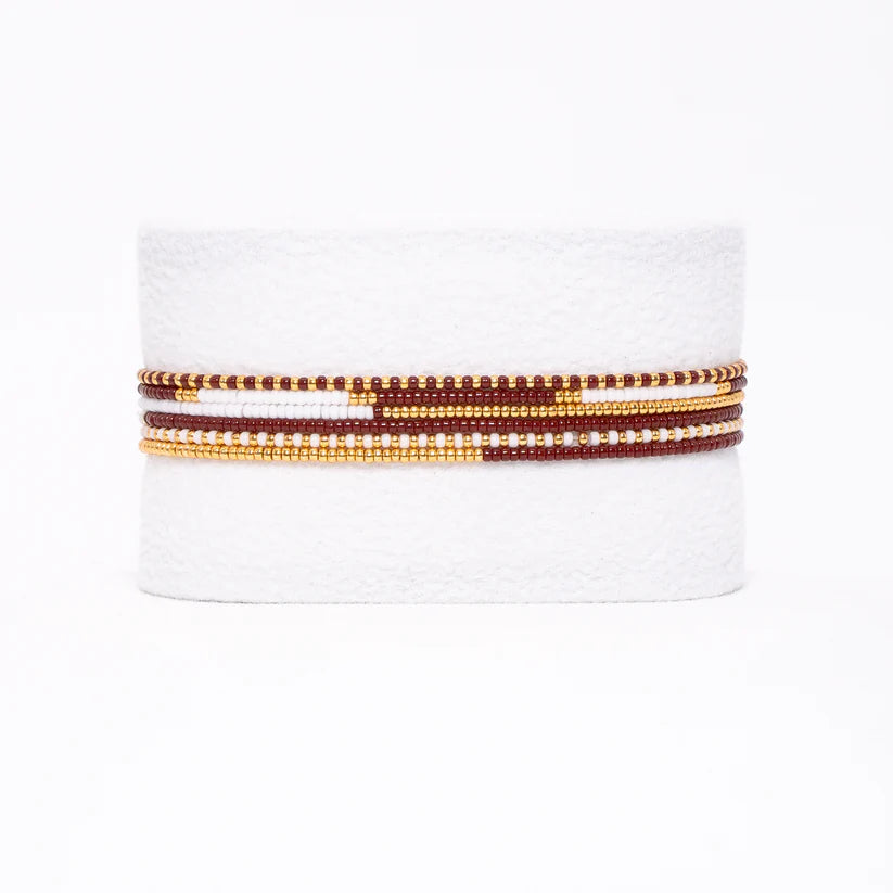 - Set of 6 Bracelet made of Luxe Japanese Miyuki beads, burnt orange, white & gold